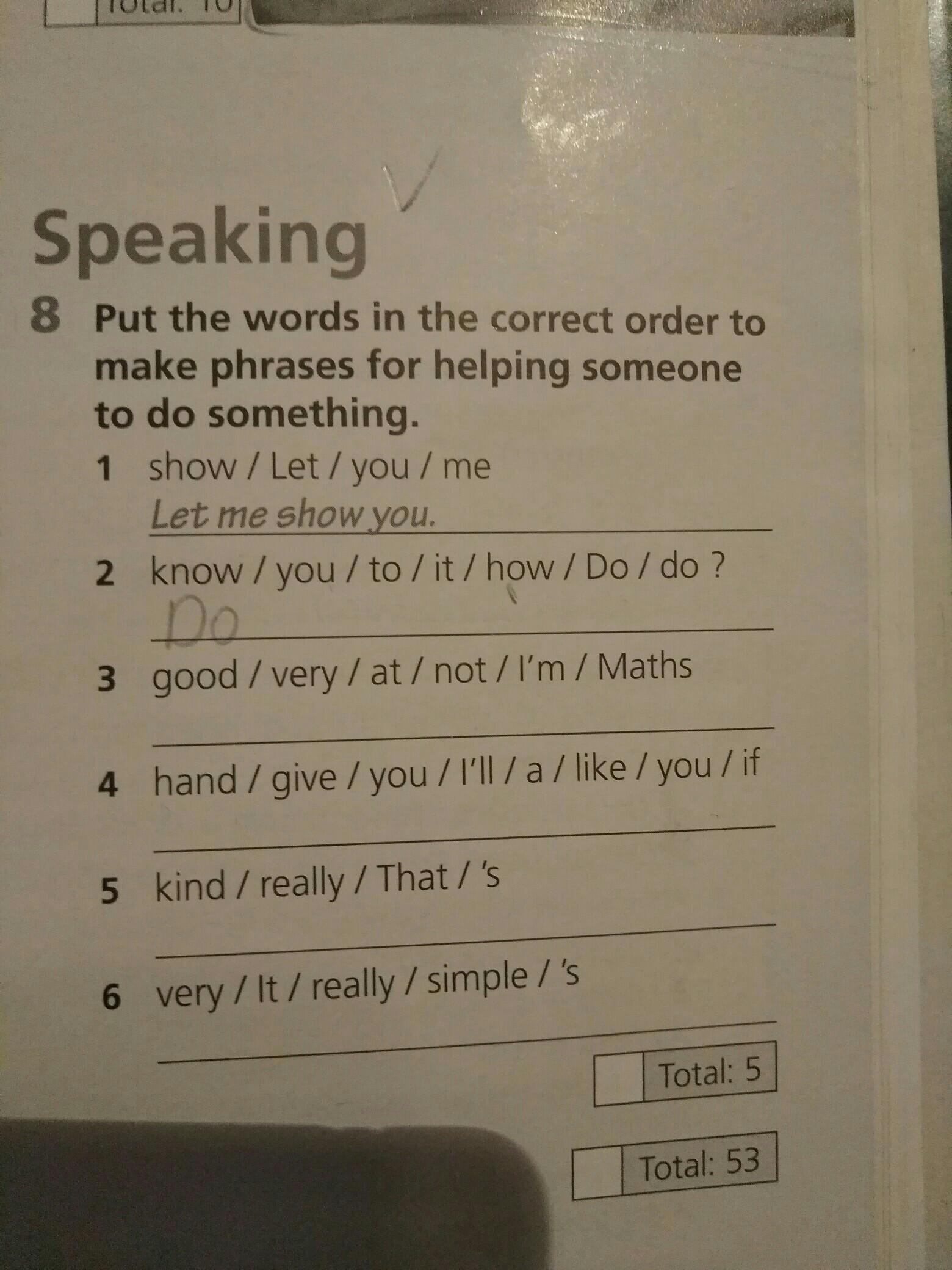 put the words in the correct order to make phrases for helping someone to do something