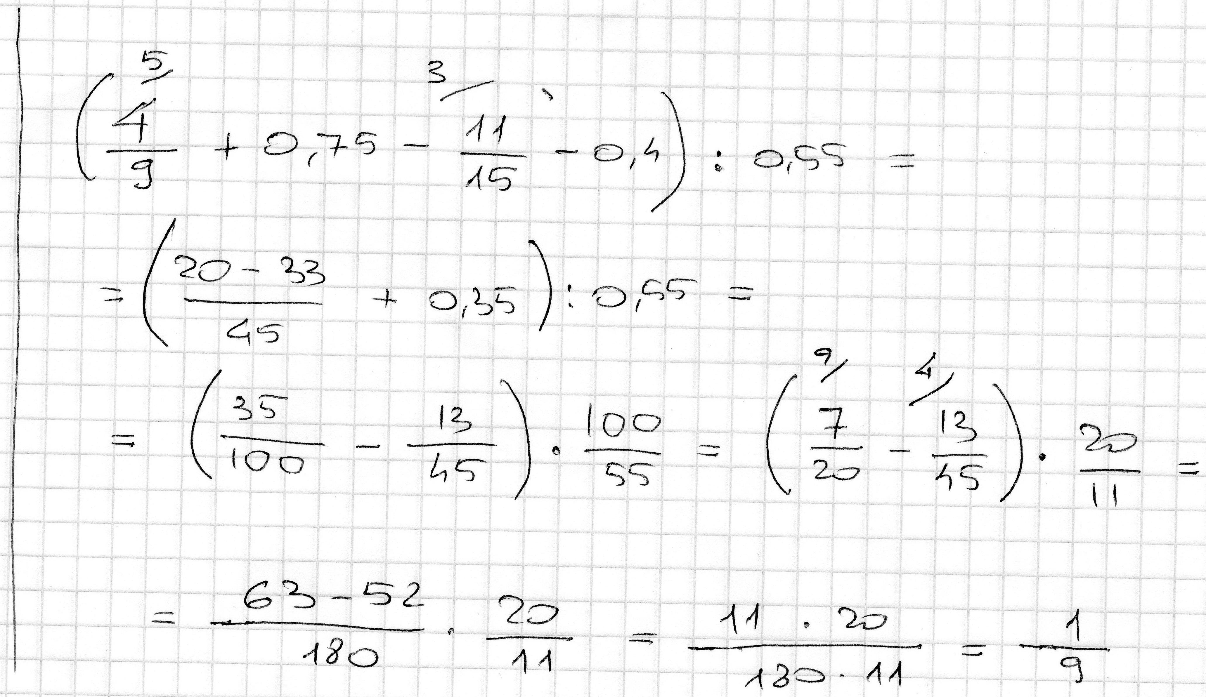 -13/45+7/20=-13/180+63/180=50/180=5/18 тут пропустил умножение числителя 13 на 4