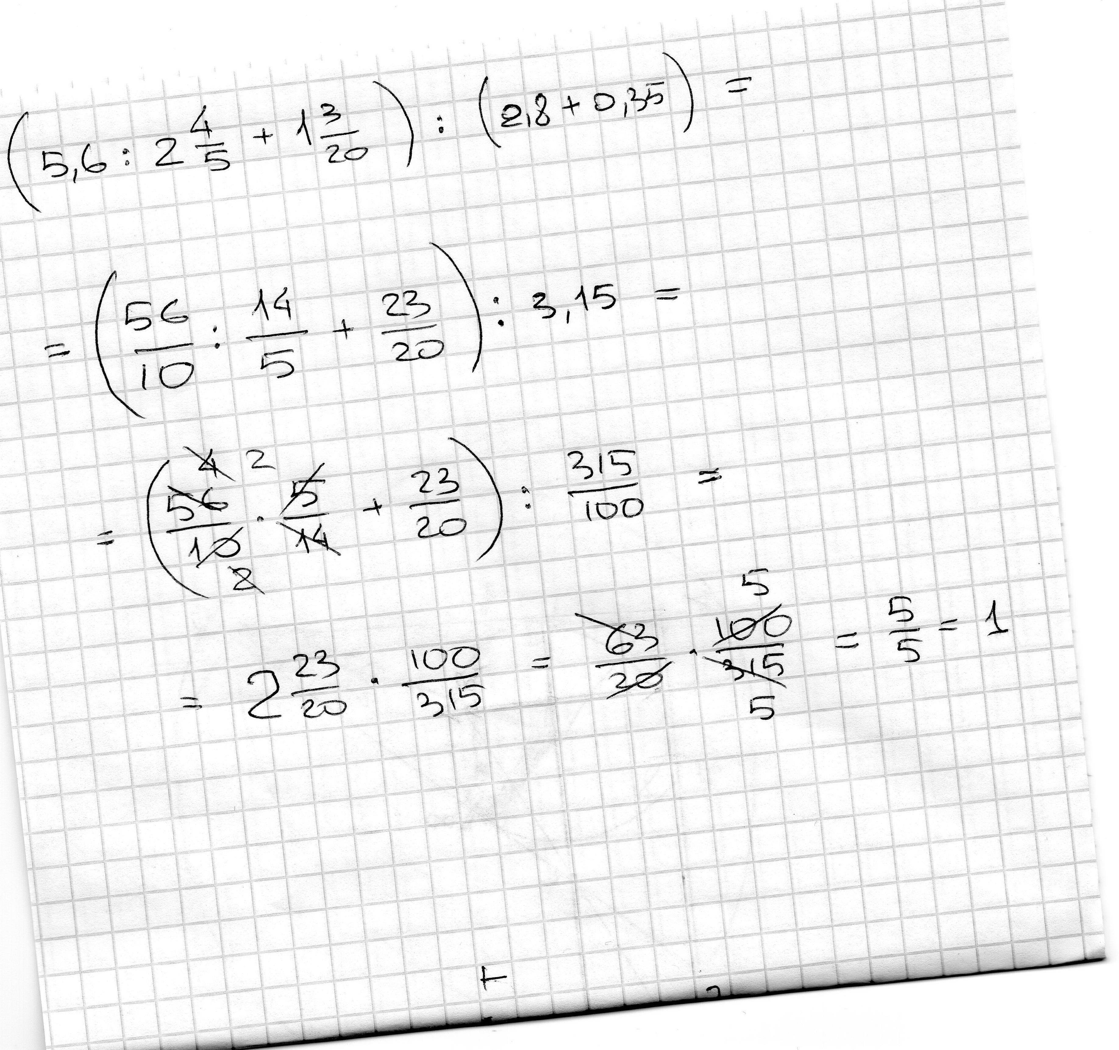 это не уравнение, а числовое выражение, вычисляем: 5.6/2.8=2, 2+1.15=3.15, 3.15/3.15 =1 -ответ