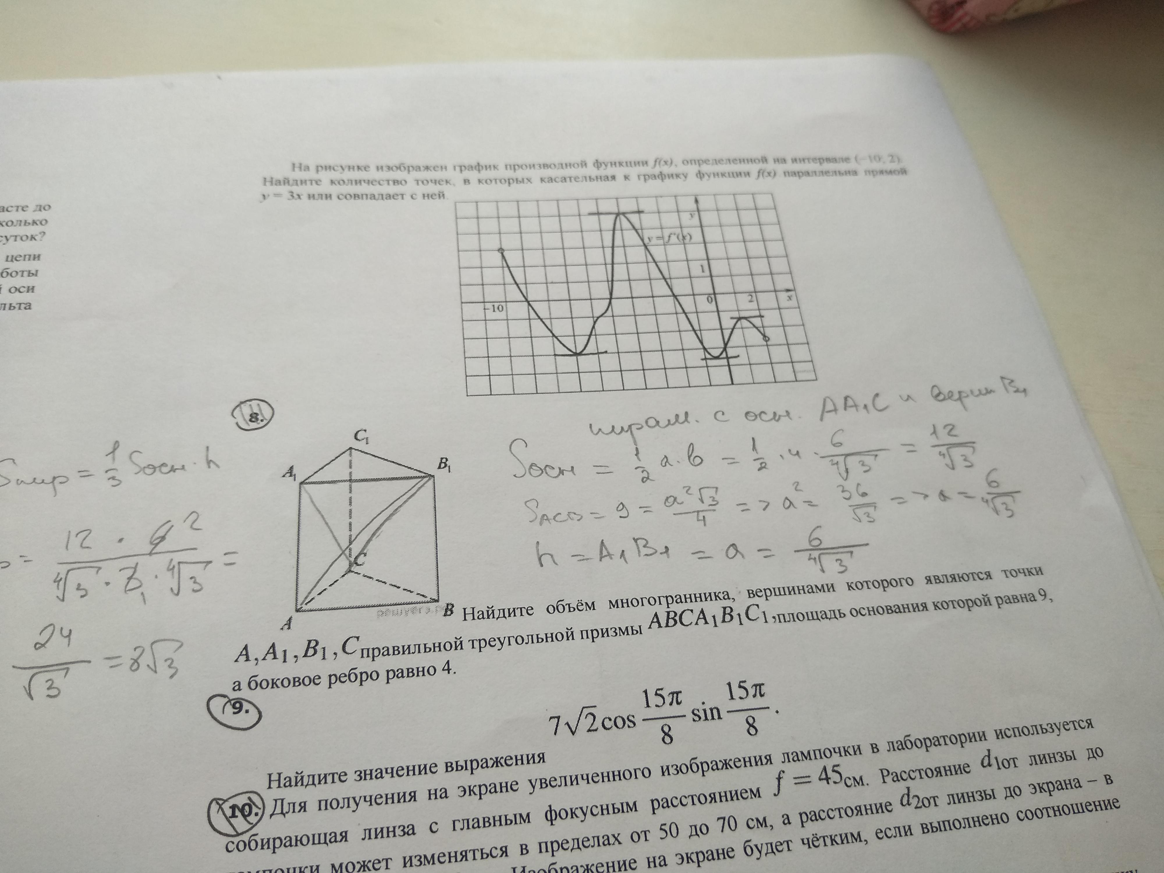 Площадь АА1С равна: So = (1/2)a*4 = (1/2)*(2√(3*√3))*4 = 4√(3*√3).