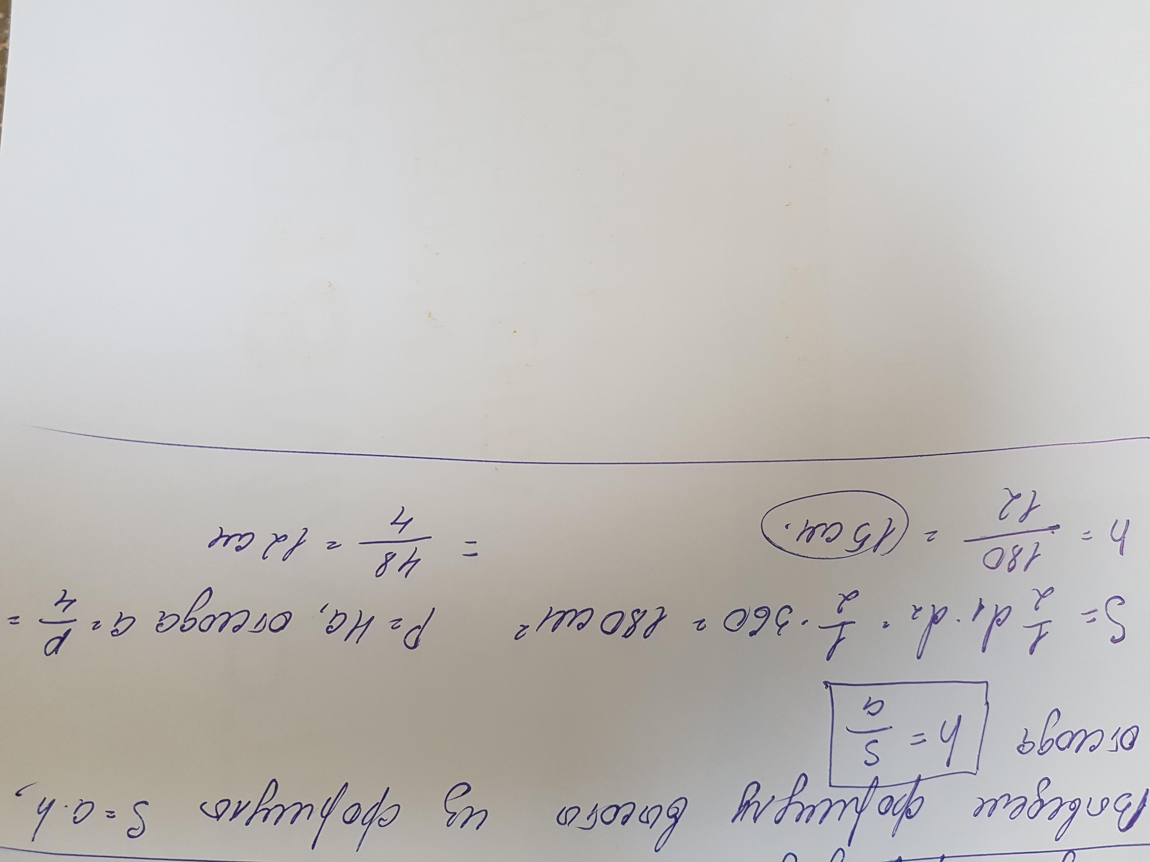 надо исправить : S=1/2*360=180; h=180/12=15. Сейчас будет верно!