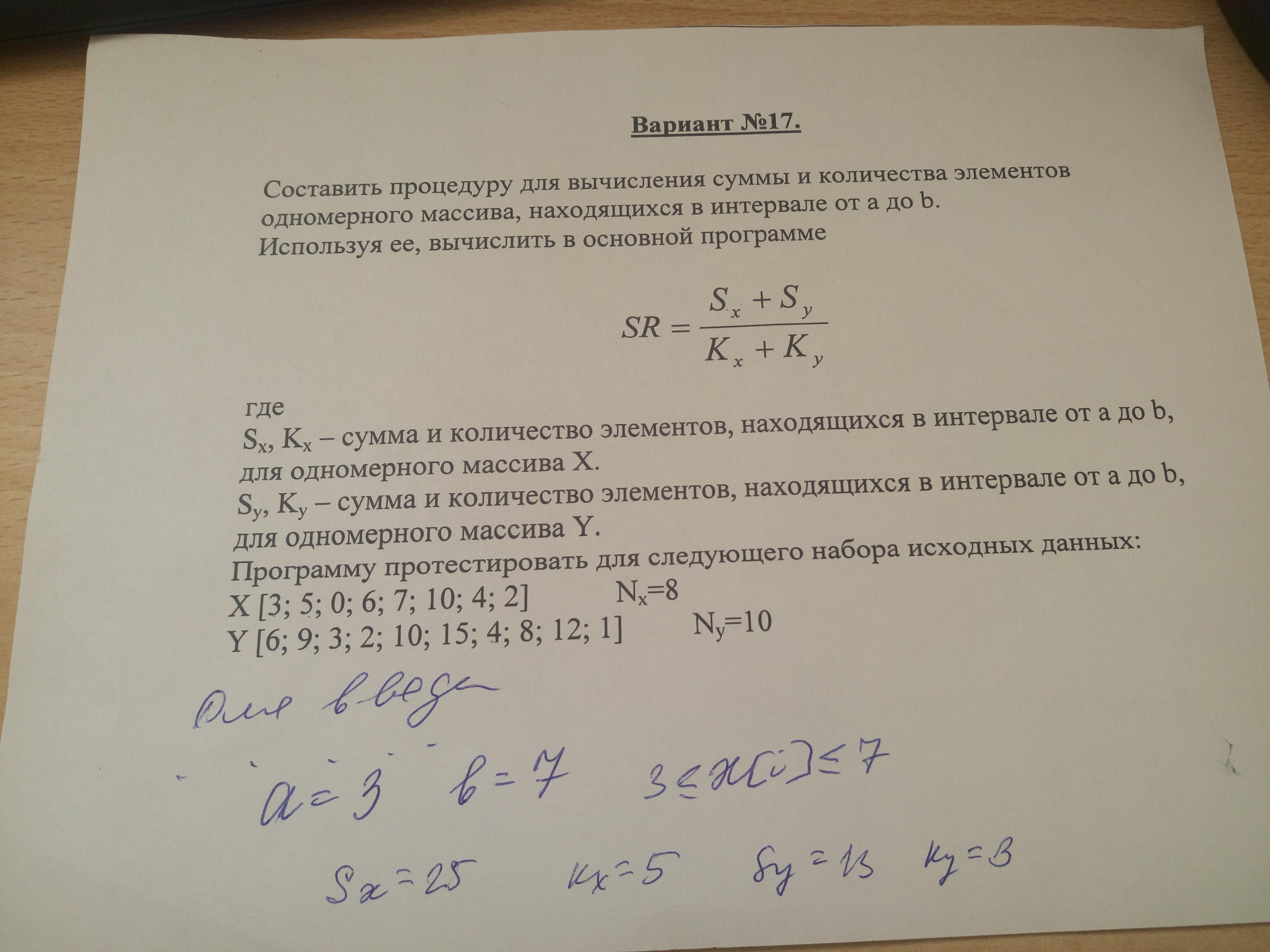 procedure sum_count(in_mas:tmas; in_count, in_a, in_b:integer; var out_sum, out_count:integer);