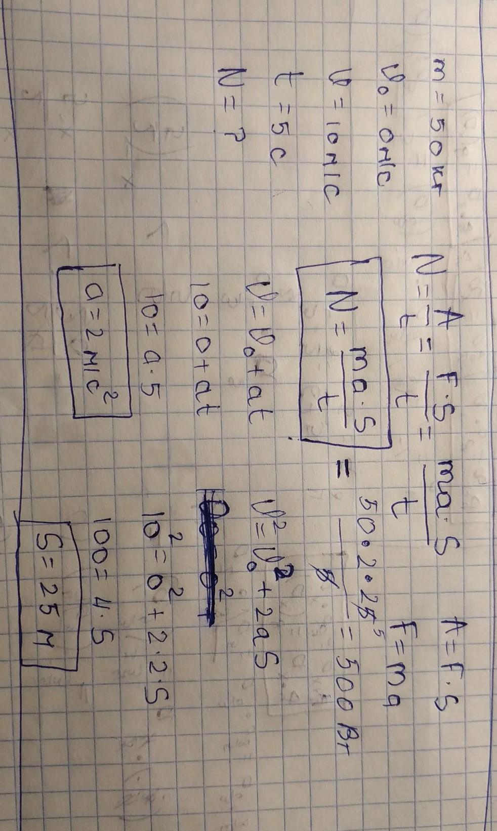Какой полезной мощностью обладает человек массой 50 кг, который увеличил свою скорость от 0 до 10 м/с за 5 с бега?