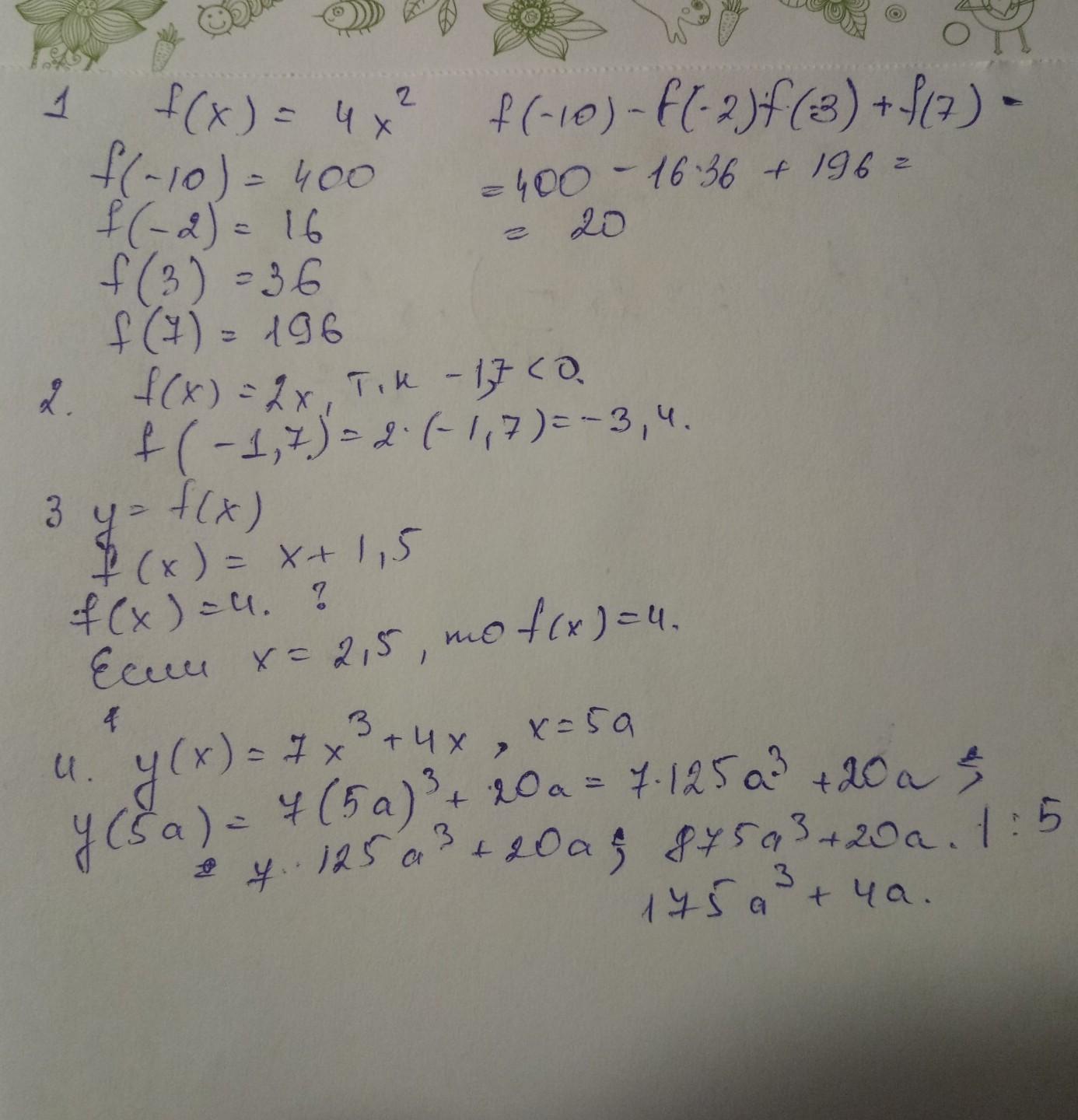 Найди значение функции y(x)=7x3+4x при x=5a .