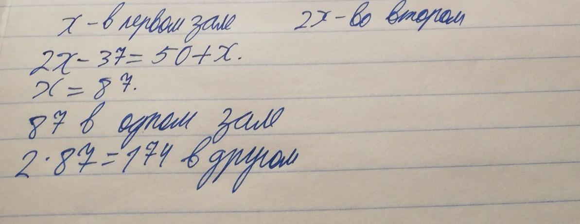 После того как зрители переместились получилось в одном зале 2х-37,а в другом х+50