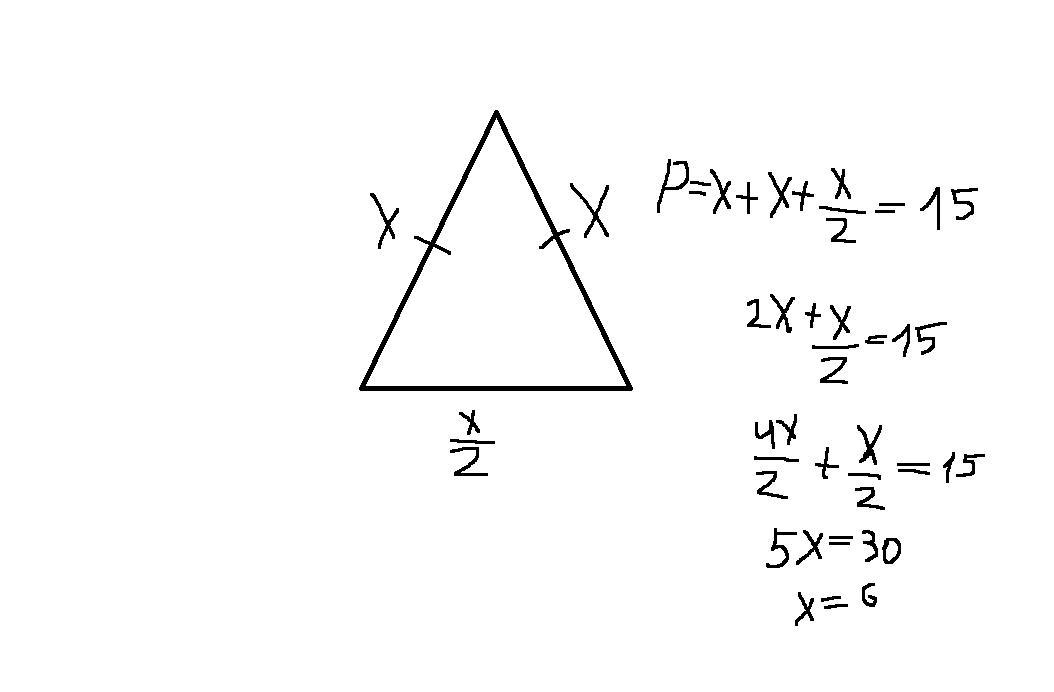 Основание равнобедренного треуголькика в 2 раза меньше боковой стороны,а периметр равен 15 см..Найдите стороны треугольника