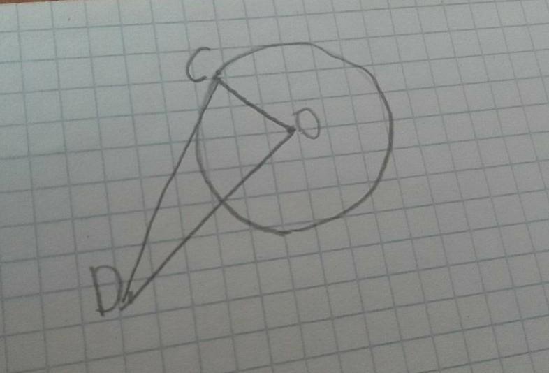 Т.к. ОС ⊥СД, т.к. радиус, проведенный в точку касания перпендикулярен касательной СД, то из прямоуг. треугольника ОДС находим гипотенузу ОД, при известных катетах √(3²+4²)=5/см/