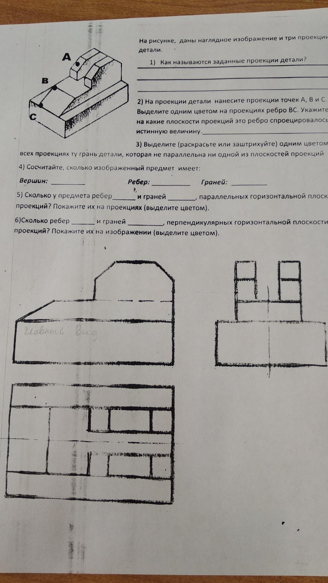 Выделите одним цветом на проекциях ребро ВС. Укажите,