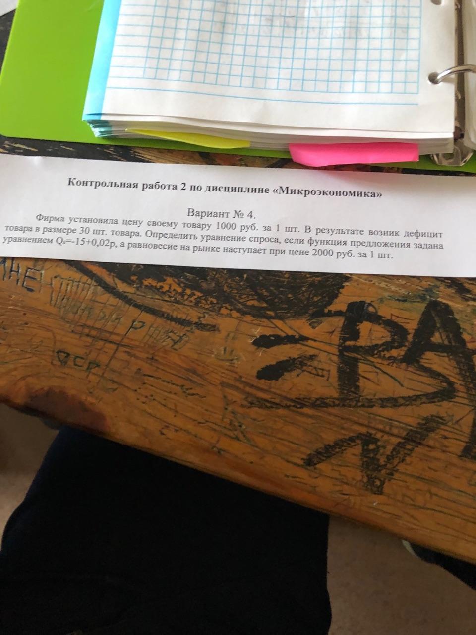 Фирма установила по своему товару 1000 рублей за 1 шт. В результате возник дефицит товара в размере 30 шт товара. Определите уравнения спроса, если функция предложения задана уравнением Qs=-15+0,02P, а равновесие наступает при цене 2000 руб за 1штуку