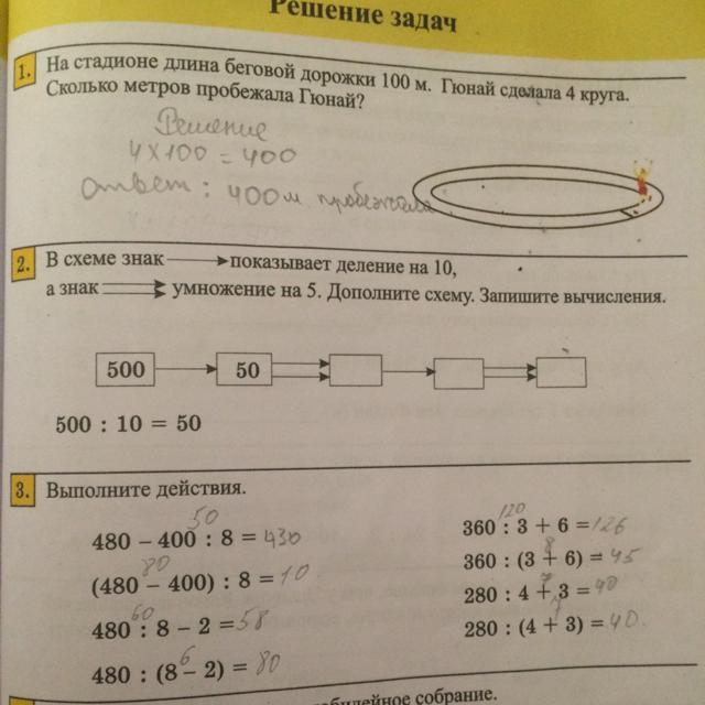 Сначала по образцу 500/10=50 так как стоит одна стрелка
