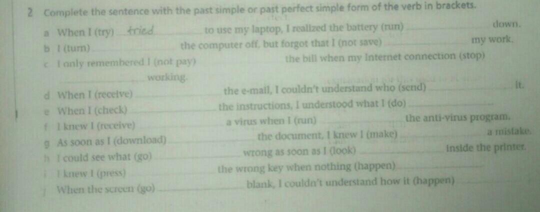Complete the sentences with the past simple or past perfect simple form of the verb in brackets.