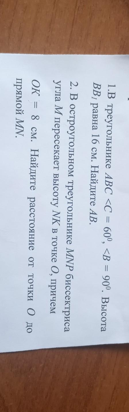 2. В ΔВВ₁А катет ВВ₁ лежит против угла А, равного 30°, потому ВВ₁ равен половине гипотенузы АВ, значит, АВ=2*16=32/см/