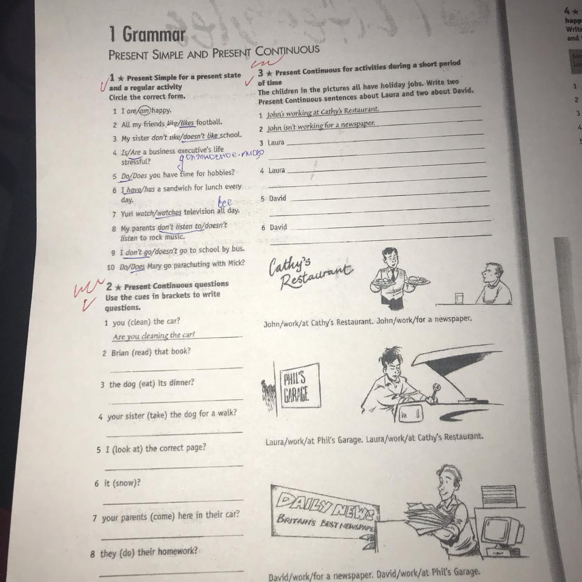 3 Laura is working at Phil's Garage.