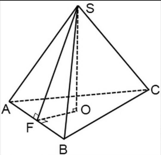 a). Рассмотрим треуг. SFO: угол О=90 град(т.к. SO-высота), FO=r(по определению, в правильной треугольной пирамиде высота проецируется в центр вписанной окружности => FO=r).