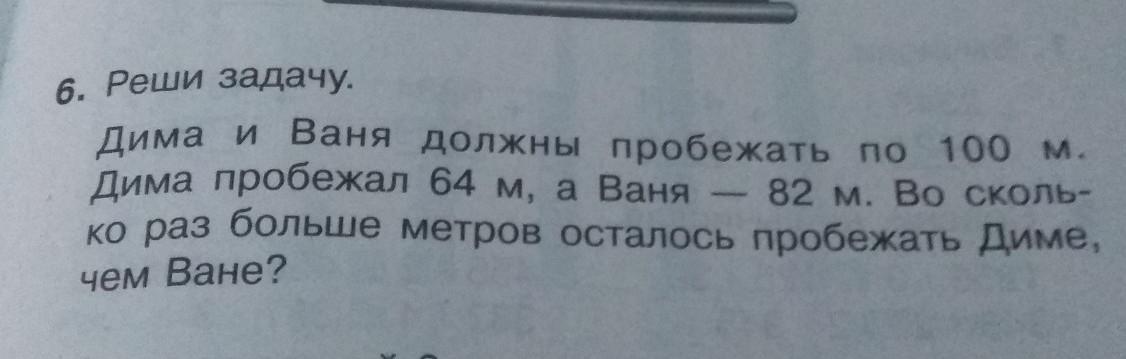 Ответ: в 2 раза больше метров осталось пробежать Диме, чем Ване.