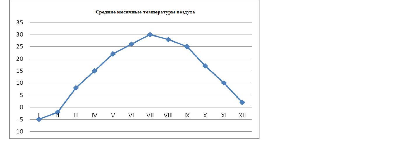 2. С помощью данного графика определите средние месячные температуры воздуха в январе, апреле, июле и ноябре, а также годовую амплитуду температуры воздуха: