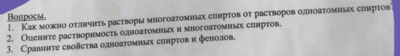 2. Одноатомные спирты, содержащие в молекуле менее 4 атомов углерода, смешиваются с водой во всех соотношениях с дальнейшим увеличением длины углеродной цепи растворимость в воде в ряду одноатомных спиртов быстро уменьшается. С увеличением числа гидроксильных групп в молекуле растворимость спиртов в воде резко увеличивается. Следовательно, многоатомные спирты лучше растворяются в воде. Растворимость многоатомных спиртов во многом зависит от строения молекулы, изомеры растворяются лучше. Это связано с полярностью связи О-Н.