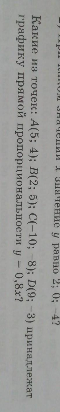 У каждой точки две координаты. Первая по оси X, вторая по оси Y. Подставляем значение координаты X в формулу графика Y = 0,8 * X. Если после вычислений получится тот самый Y, то точка принадлежит графику. В обратном случае нет.