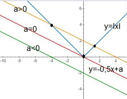 При каких значениях а график функции y=|x| и y= -0.5x +a