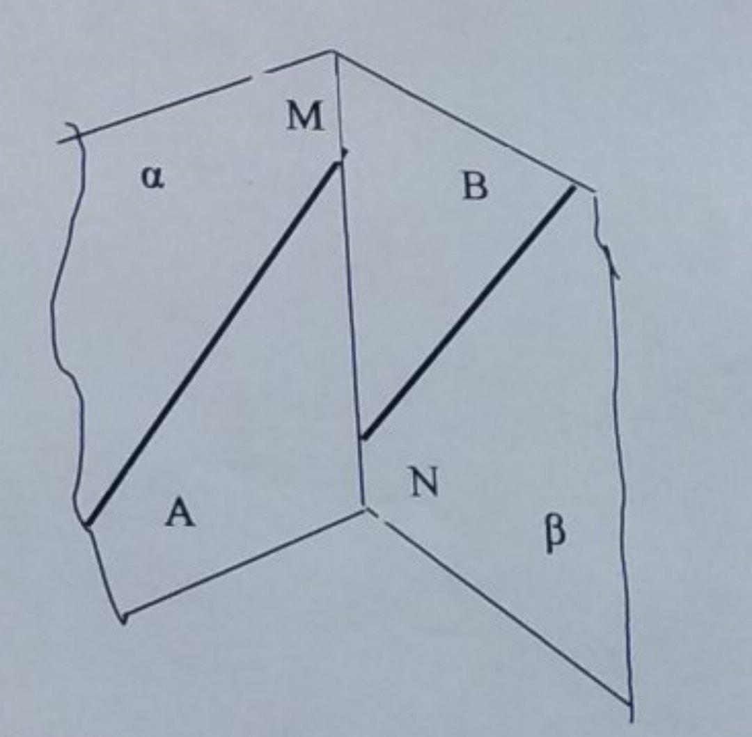 пересекаются по прямой MN. точка А лежит в плоскости альфа, точка B- в плоскости бета.