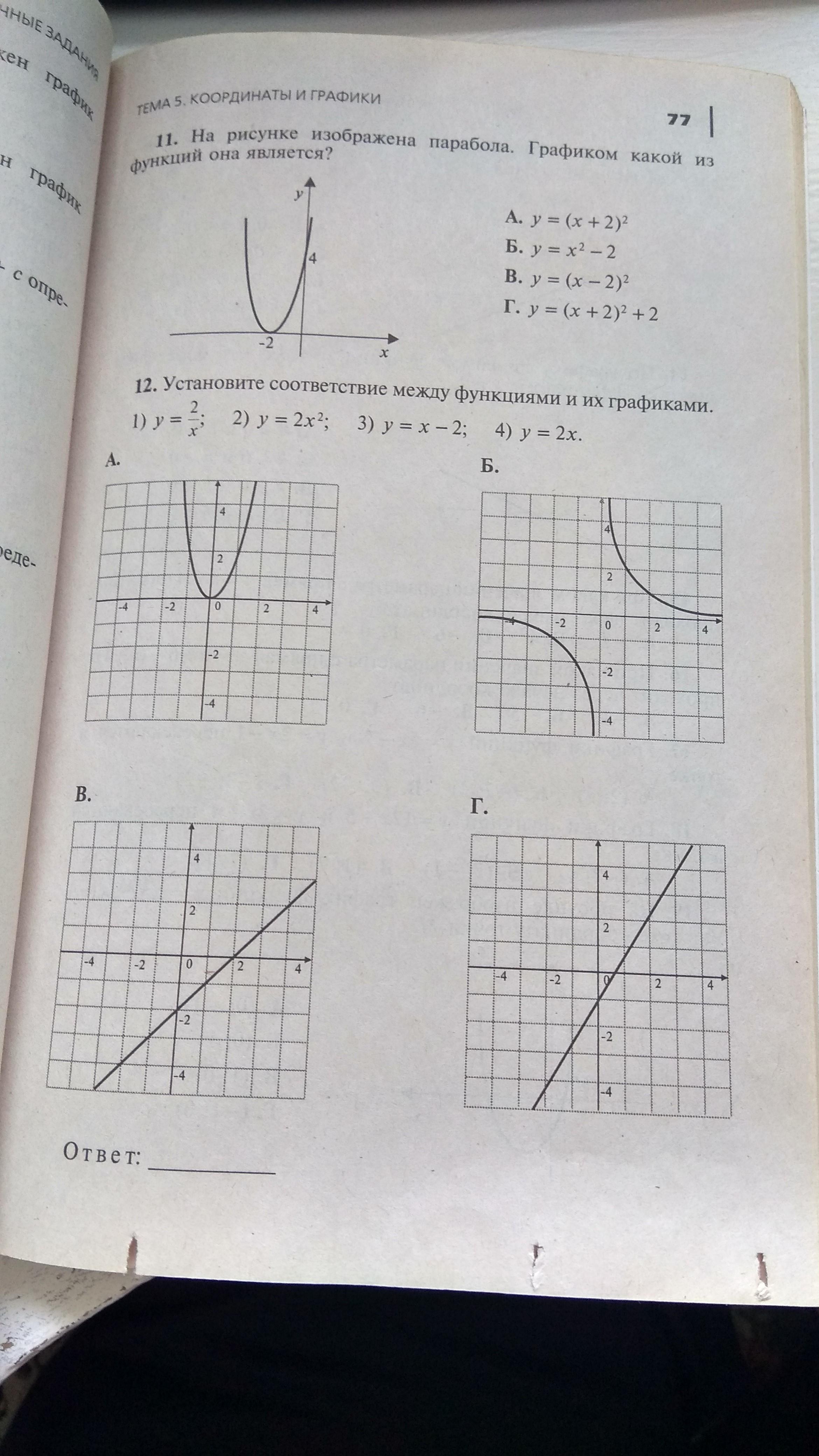 11.На рисунке изображена парабола. Графика какой из функций она является?