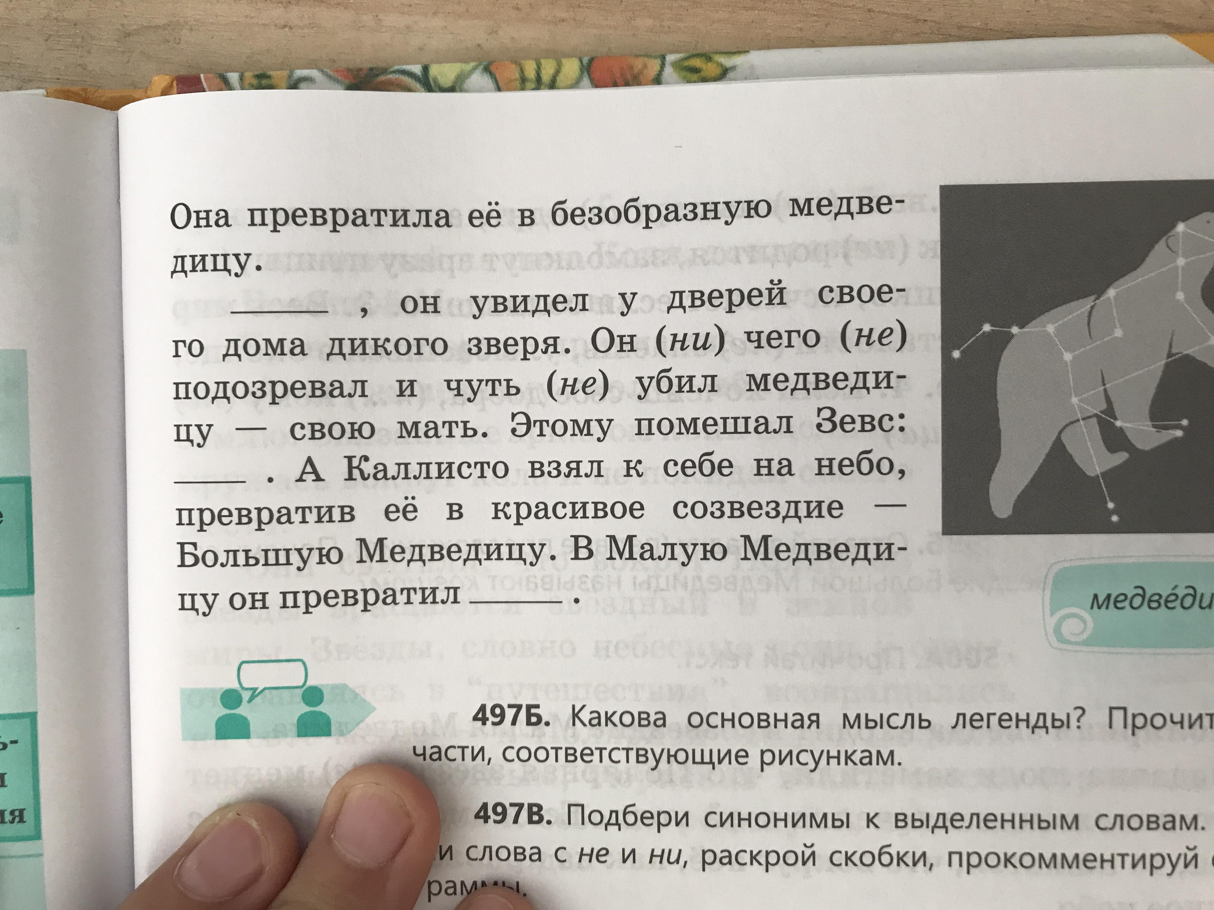 Когда сын Каллисто Аркад вернулся с охоты, он увидел у дверей своего дома дикого зверя. Он ничего не подозревал и чуть не убил медведицу -- свою мать. Этому помешал Зевс: он удержал руку Аркада. А Каллисто взял к себе на небо, превратив в красивое созвездие -- Большую медведицу. В Малую Медведицу он превратил любимую собаку Каллисто.