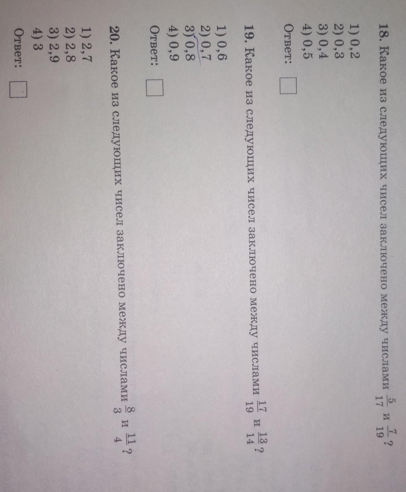 18. надо обыкновенные дроби превратить в десятичные и посмотреть какое число расположено между ними