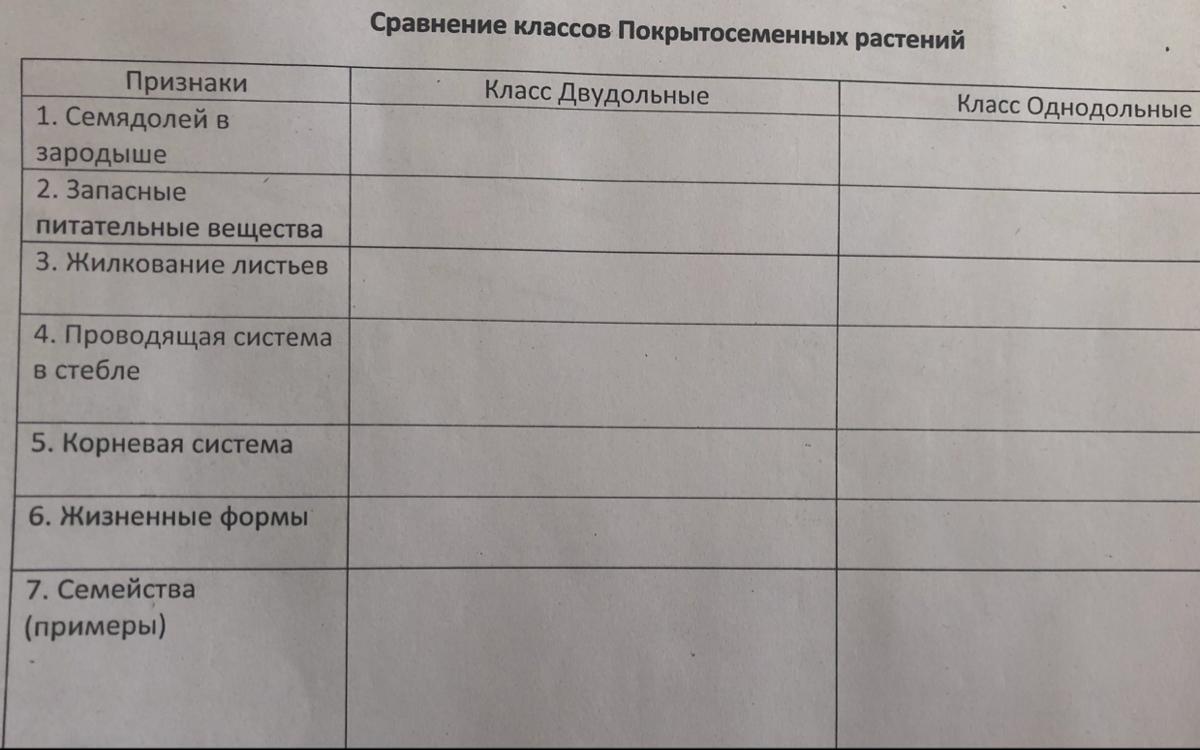 1 столбец - двудольные, 2 - однодольные