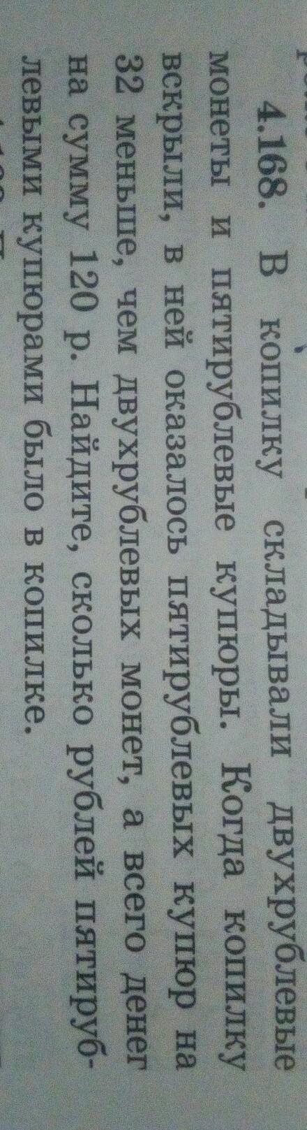 также мы знаем, что пятирублёвых на 32 меньше , чем двухрублёвых