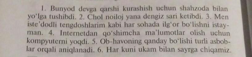 1)Бунйод чтоб сражаться с дьяволом С принцом они отправились в путь 2)Старик ничего не поделав ушло в море