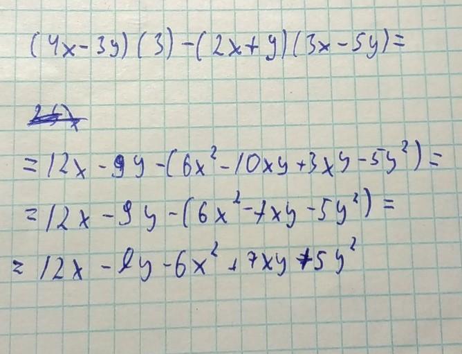 1Упростите выражение (4х – Зу)(3) — (2x + y)(3x — 5у).