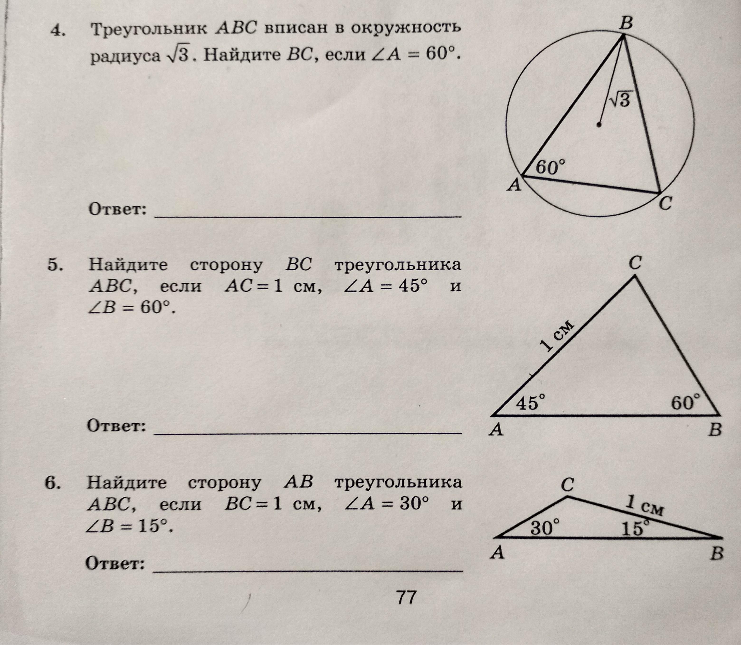 6. 1/sin30°=АВ/sin(180°-30°-15°); sin135°=sin45°=√2/2