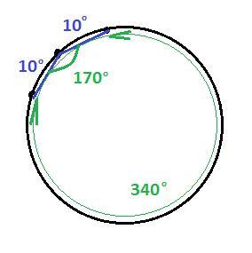 340° : 2 = 170°