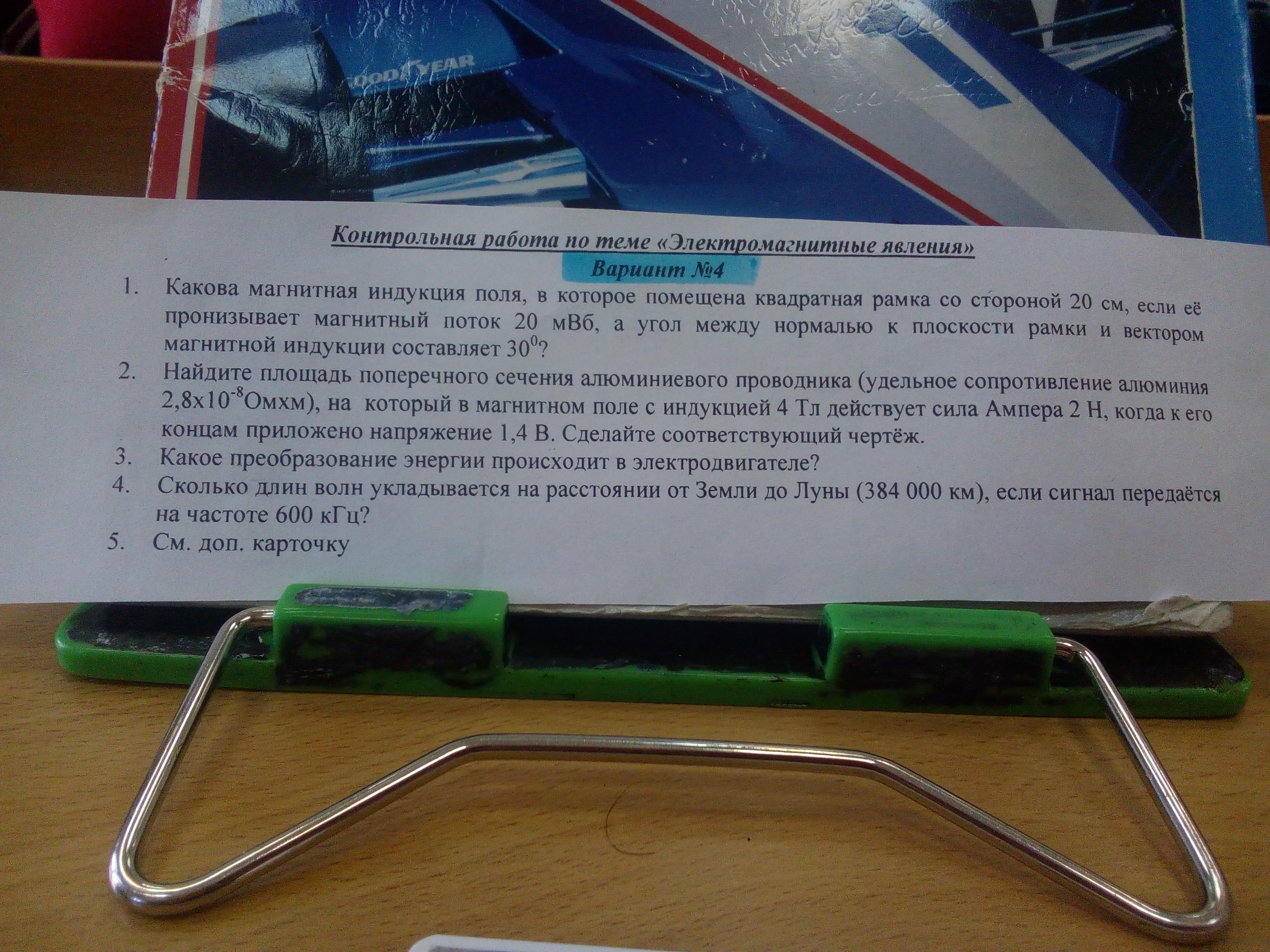 Объяснение: 1) Ф=B*S*cosa B=Ф/S*cosa=20*10^3/0,2^2*0,87=0,57 Тл 3) Электрическая=> механическая 4) L=c/v=3*10^8/600*10^3=500 м N=S/L=384*10^6/500=768*10^3