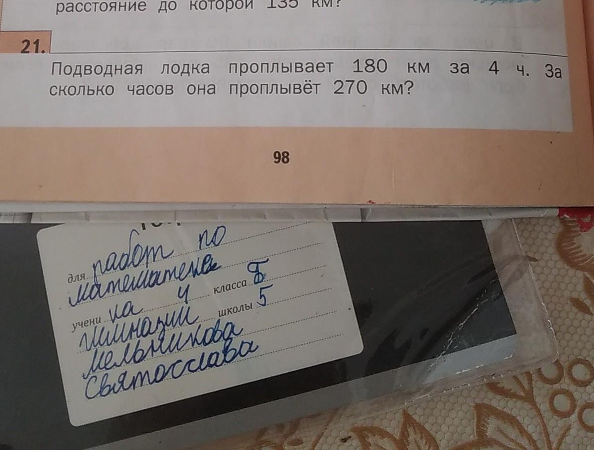 2) 270/45=6(ч) - через столько часов проплывет 270 км.
