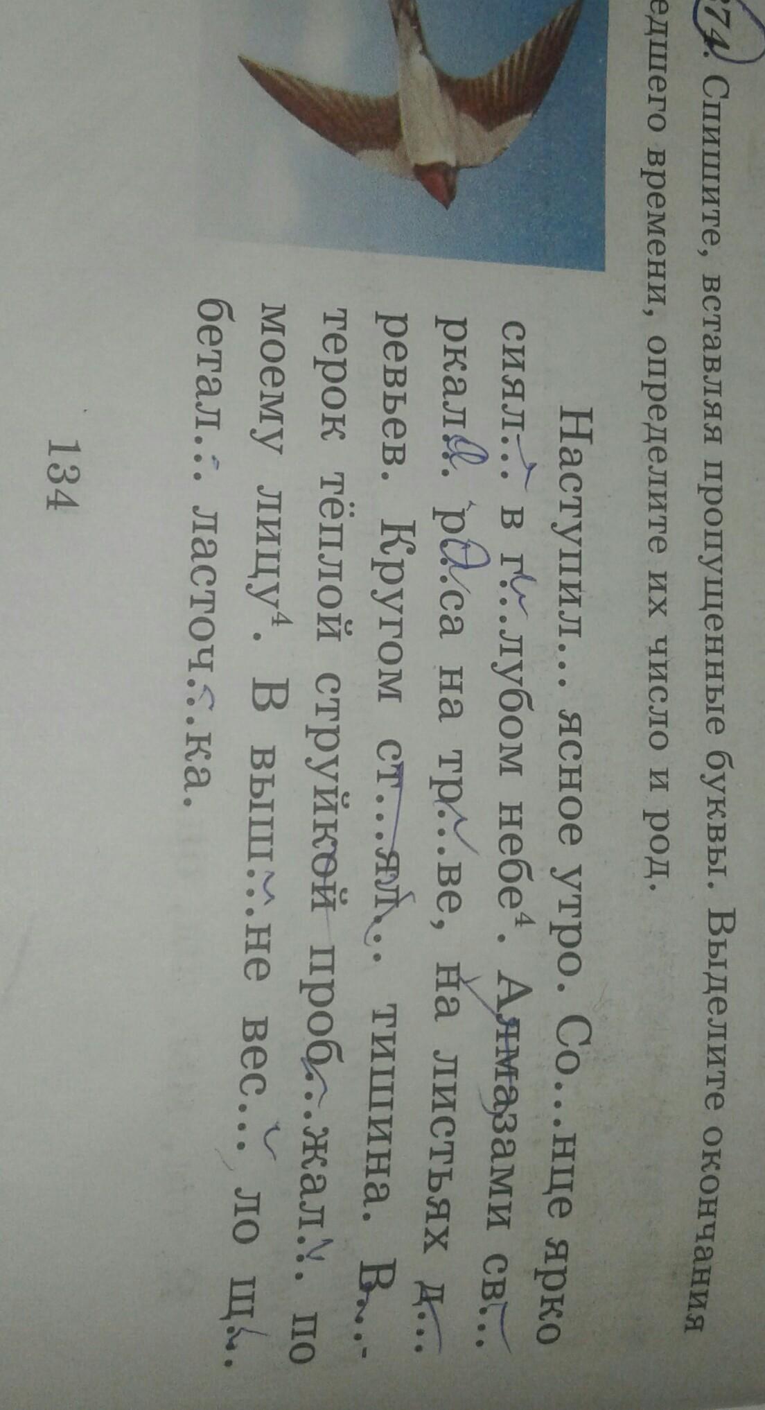 Спишите, вставляя пропущенные буквы. Выделите окончания глаголов прошедшего времени, определите их число и род.
