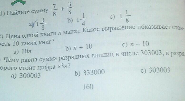 1. 7/8+3/8=10/8 это значит 1 и2/8 или1 и1/4 ответ b
