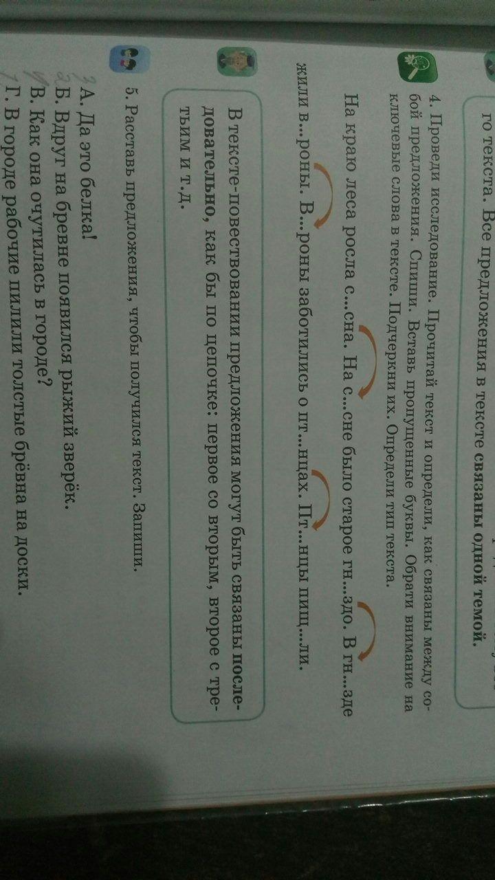 Г. В городе рабочие пилили толстые брёвна на доски. Б. Вдруг на бревне появился рыжий зверёк. А. Да это белка! В. Как она очутилась в городе?