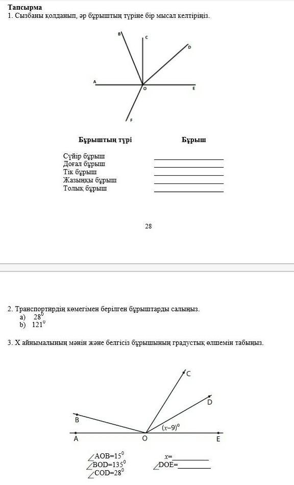 Доғал бұрыш:BOE;DOF,BOF.