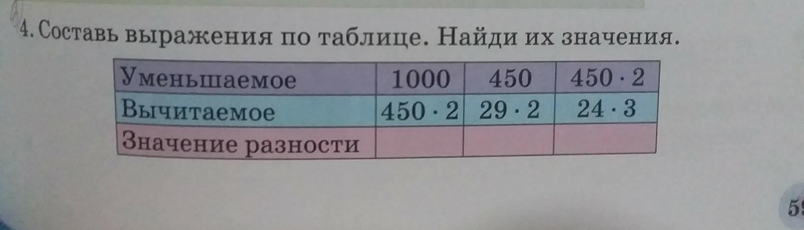 Составь выражения по таблице. Найди их значения.Помогите пожалуйста за 5 минут.