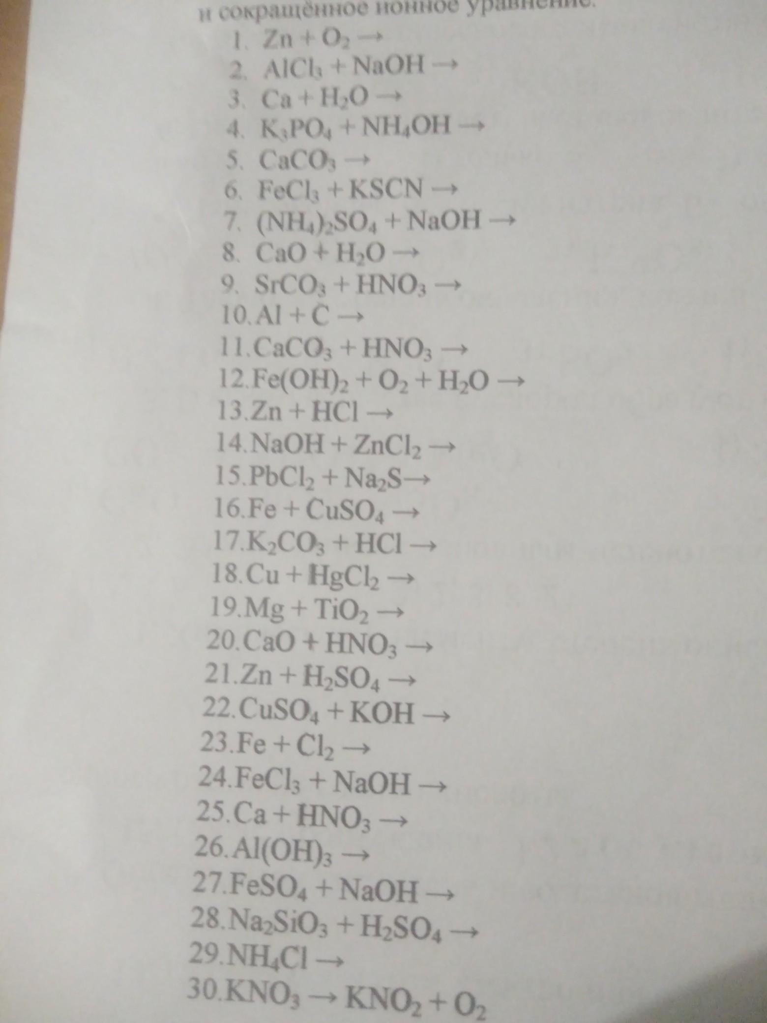 25. 4Ca + 10HNO3 (разб.) = 4Ca(NO3)2 + N2O↑ + 5H2O ок-восстановит.