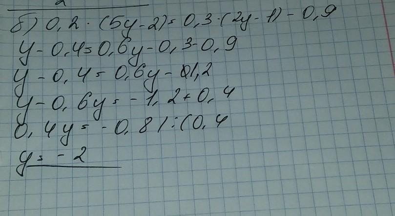 Б)0,2(5у-2)=0,3(2у-1)-0,9