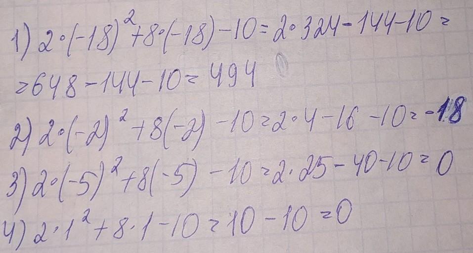 При каком значении трёхчлен 2x^2+8x-10 имеет наименьшее значение? Варианты ответа: -18; -2; -5;1