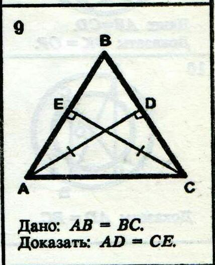 точка пересечения пусть буква О. т.к. треугольник равнобедренный,то АО=СО(по условию), следовательно, АD=СЕ