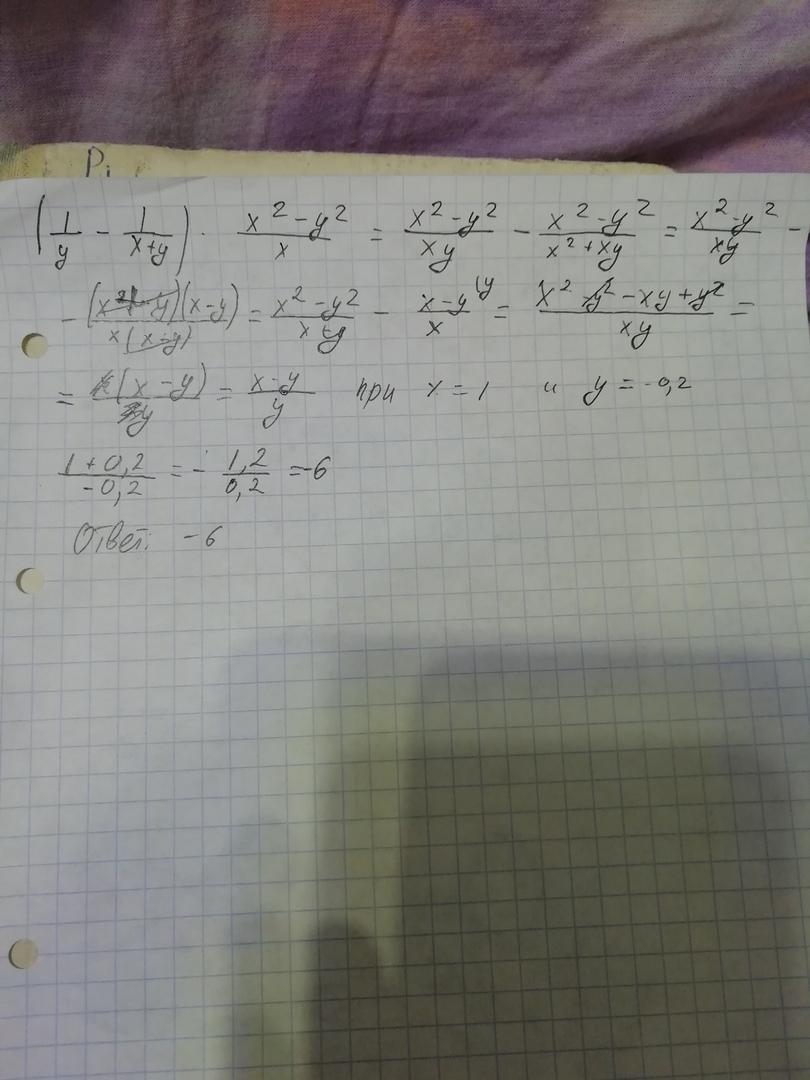 найти значение выражения (упростить) (1/y - 1/x+y) • x2-y2/x при x=1, y=-0/2