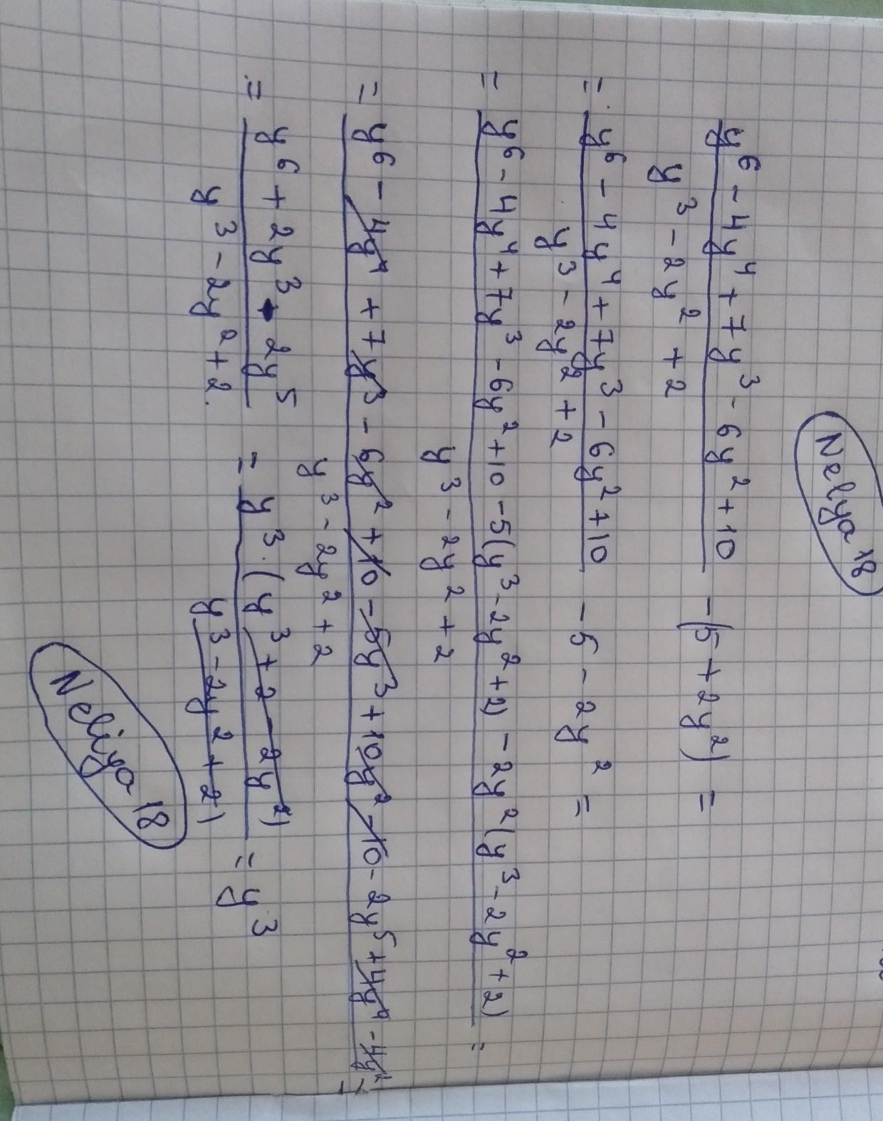 Докажите, что алгебраическое выражение (y^6-4y^4+7y^3-6y^2+10/y^3-2y^2+2)-(5+2y^2) тождественно равно одночлену