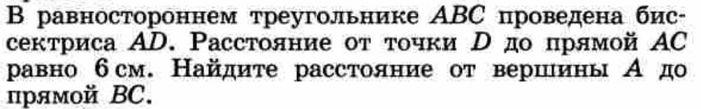 В равностороннем треугольнике биссектриса является и высотой и медианой.