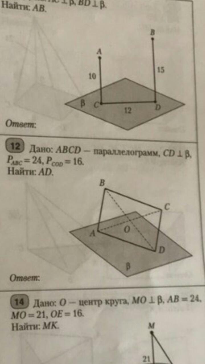 12) Так как сторона СД перпендикулярна плоскости бета, то АВСД - прямоугольник.