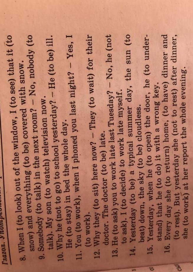 Нужно: " Раскройте скобки, опотребив в одном из времен: Past Simple, Present Simple, Present Continuous, Past Continuous.".