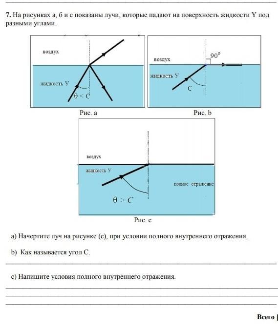 в) условие п.в.о.: sinAпад≥n2/n1, где n1 -абс. показатель преломления среды падения (по условию -жидкость), n2 -а.п.п. среды преломления (воздух), n1>n2 -из более плотной в менее плотную